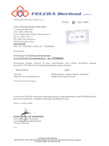 License - FELCRA (Page1) License - FELCRA (Page2)