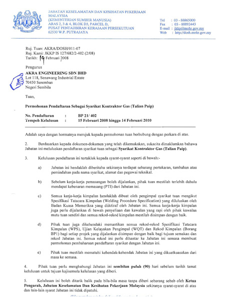 License - JKKP Kontraktor Gas(Talian-Paip) - Page1 License - JKKP Kontraktor Gas(Talian-Paip) - Page2